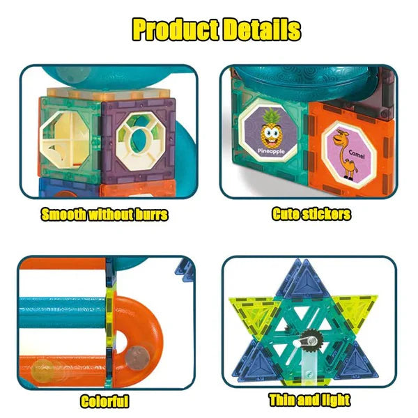 Strong magnets ensure stable structures, while the transparent pipes let kids watch the ball speed through their custom tracks. Ideal for home learning, classrooms, or family playtime — a great gift for curious young builders!