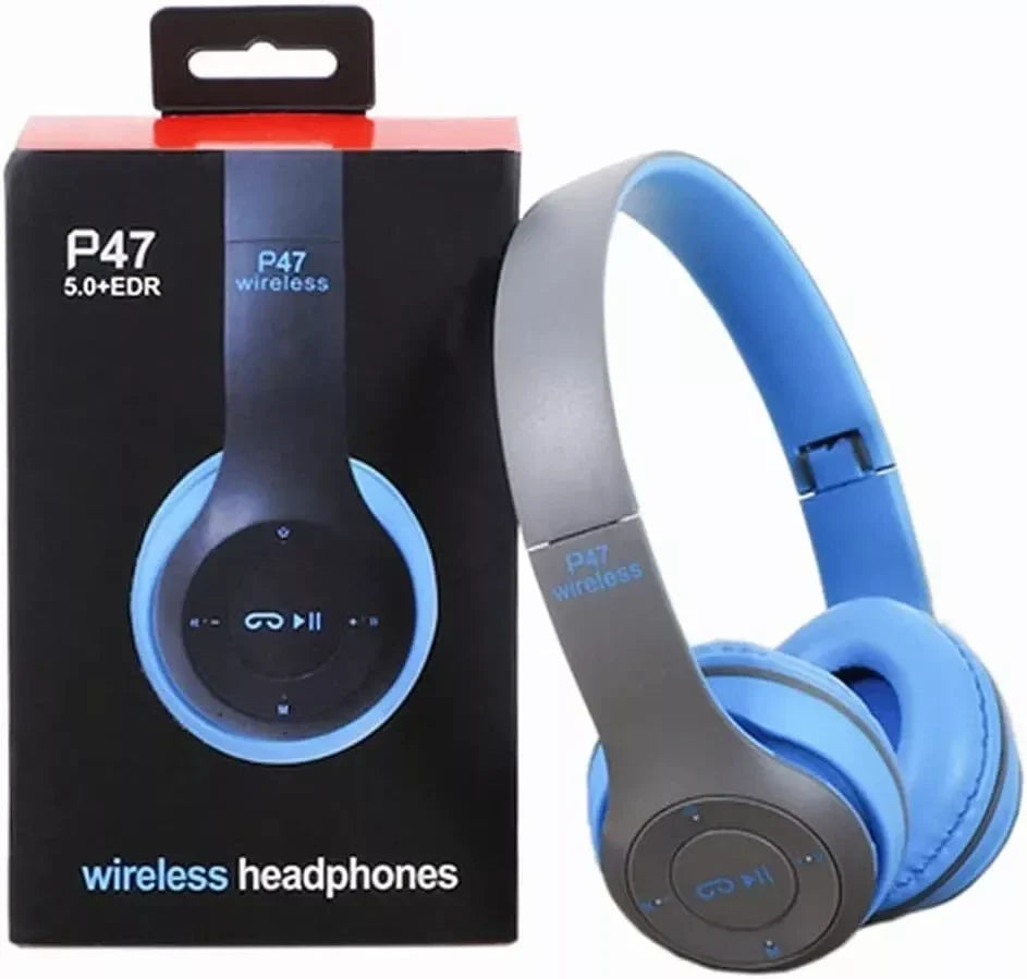 Enjoy immersive sound anywhere with the P47 Wireless Bluetooth Headphones. Designed for comfort and performance, these over-ear headphones deliver rich, deep bass and crystal-clear audio. Featuring Bluetooth connectivity, built-in mic, and control buttons for easy music and call management, the P47 is perfect for home, travel, or workouts. The adjustable headband and cushioned ear pads ensure long-lasting comfort, while the foldable design makes them portable and convenient to carry.